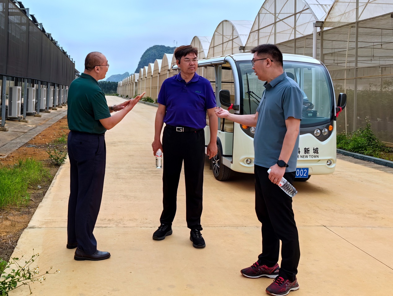 5月7日,中国科学院院士、清华大学生命科学学院教授、清华大学学术委员会副主任、国家农业生物安全委员会副主任、国际种业联合体副主席谢道昕院土在农发院司红彬副院长(主持工作)陪同下,到广西亚热带农科新城调研(以下简称“农科新城”),先后参观了农业高新技术产业示范区展厅、表型组学平台、智慧温室大棚、甘蔗健康种苗生产中心等。