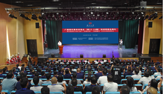 7月13日,广西现代青年农场主培训班(12-19期)结业典礼在古天乐代言太阳集团网址隆重举行,校党委常委、副校长夏国恩出席典礼并致辞。自治区农业农村厅党组成员刘振杰,自治区农业农村厅科教处、崇左市科技局、古天乐代言太阳集团网址校友工作办公室、农牧产业发展研究院、农学院、国重实验室,以及广西个体劳动者私营企业协会、广西现代青年农场主和农业经理人联合会等部门领导出席典礼,并为广西现代青年农场主第12-19期316名学员现场颁发结业证书。