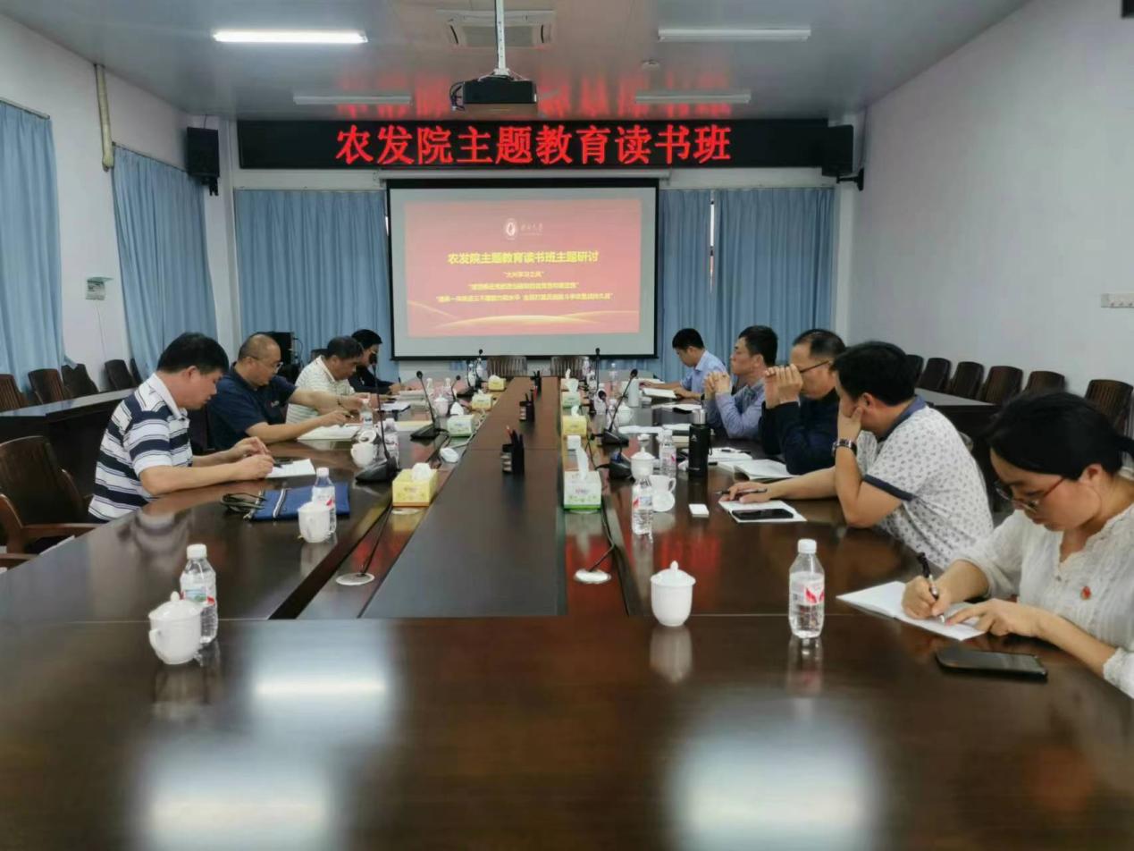 5月12日-13日,农牧产业发展研究院(以下简称农发院)学习贯彻习近平新时代中国特色社会主义思想主题教育读书班第三次集中学习暨农科新城建设与发展研讨会在古天乐代言太阳集团网址亚热带农科新城举办,全体成员参加了主题教育读书班。