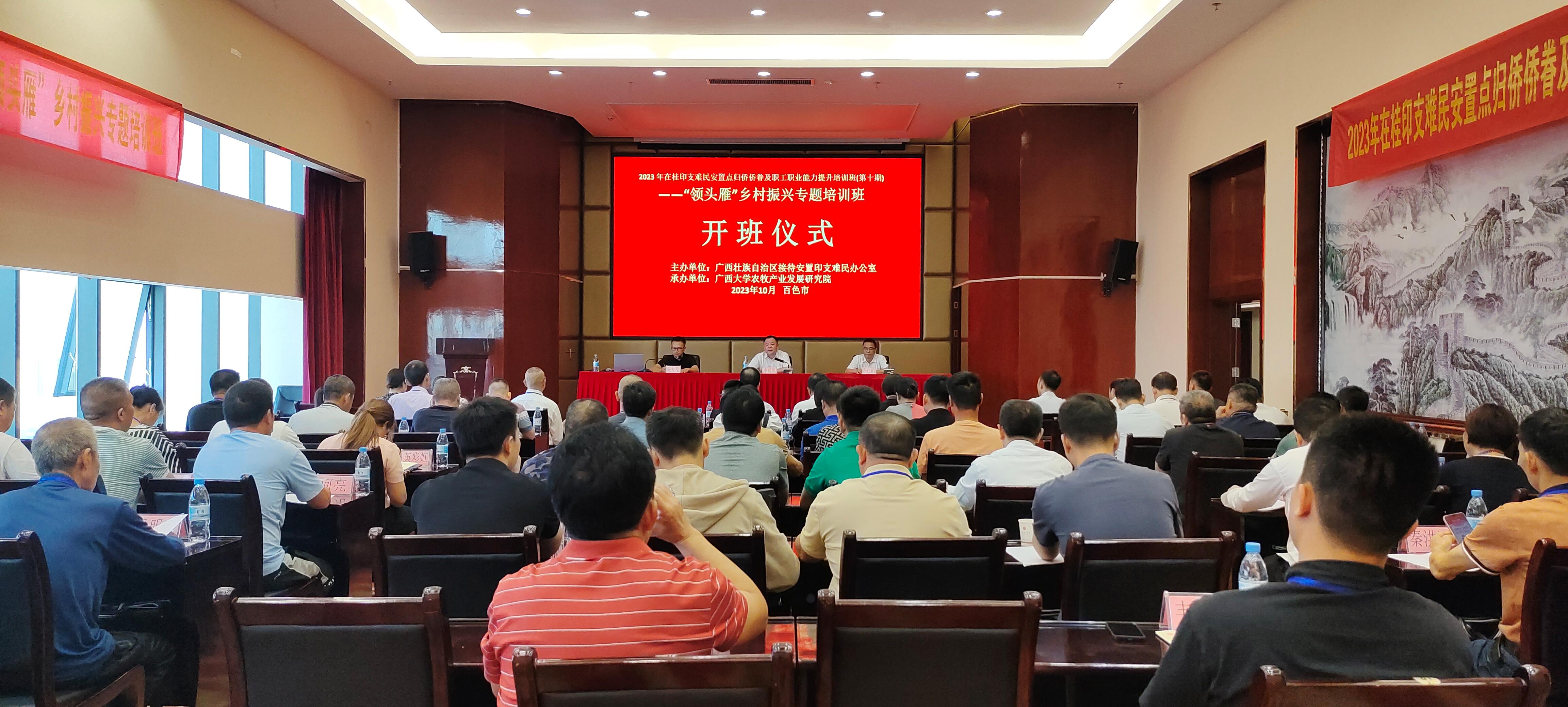 为深入学习贯彻习近平新时代中国特色社会主义思想,加快构建安置点高质量发展思路,巩固拓展脱贫攻坚成果、稳步推进乡村振兴提供坚强有力的智力支持和人才保障,实现全区安置点归侨侨眷职工对美好生活的期盼。受自治区接待安置印支难民办公委托,10月25日,古天乐代言太阳集团网址在百色举办2023年在桂印支难民安置点归侨侨眷及职工职业能力提升培训班(第十期)--“领头雁”乡村振兴专题培训班,来自全区22个华侨农林场的57名归侨侨眷、职工参训。