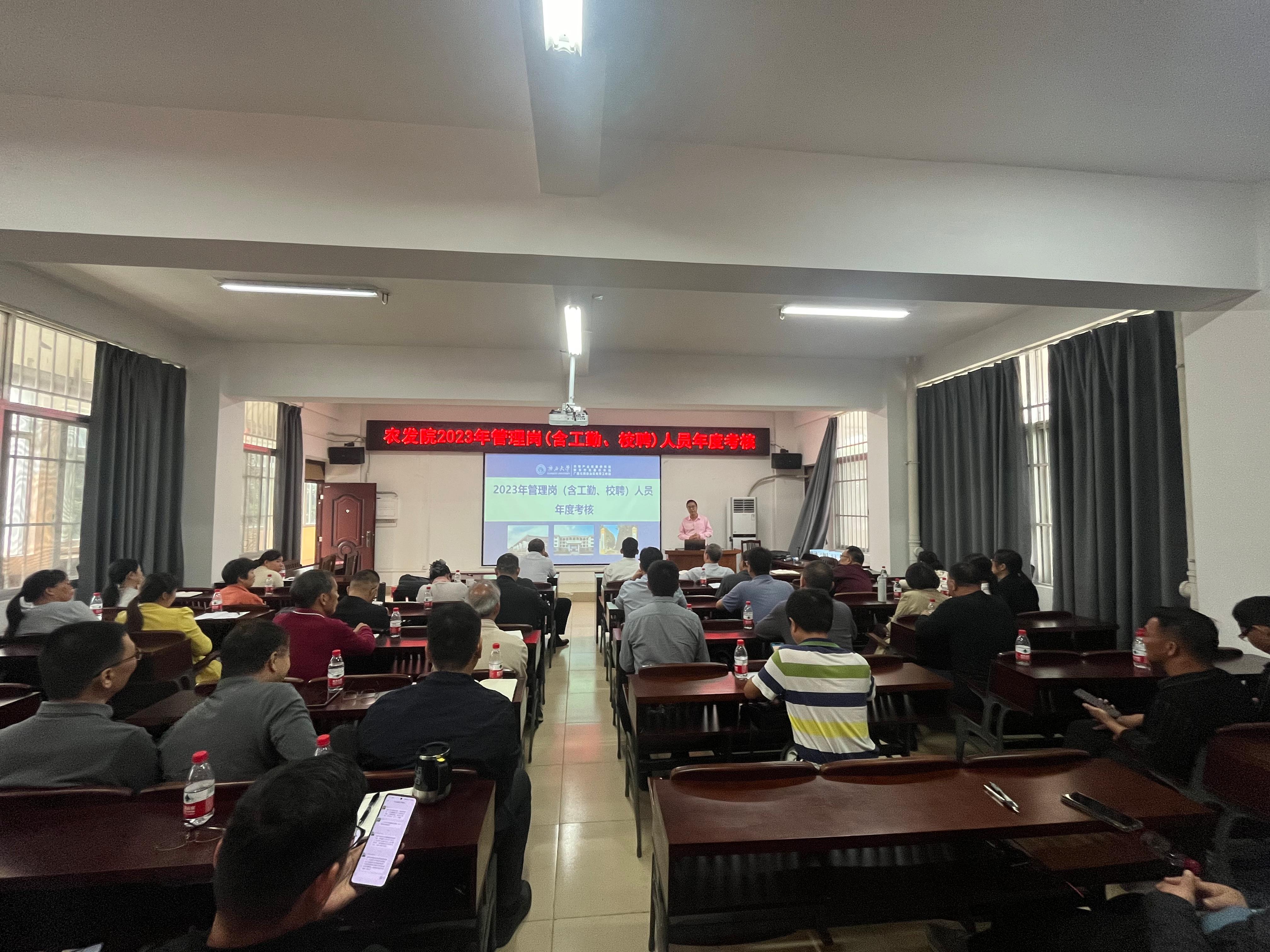 2023年12月11日,农发院2023年管理岗位(含工勤、校聘)干部职工年度考核述职工作会议在古天乐代言太阳集团网址201会议室顺利举行。