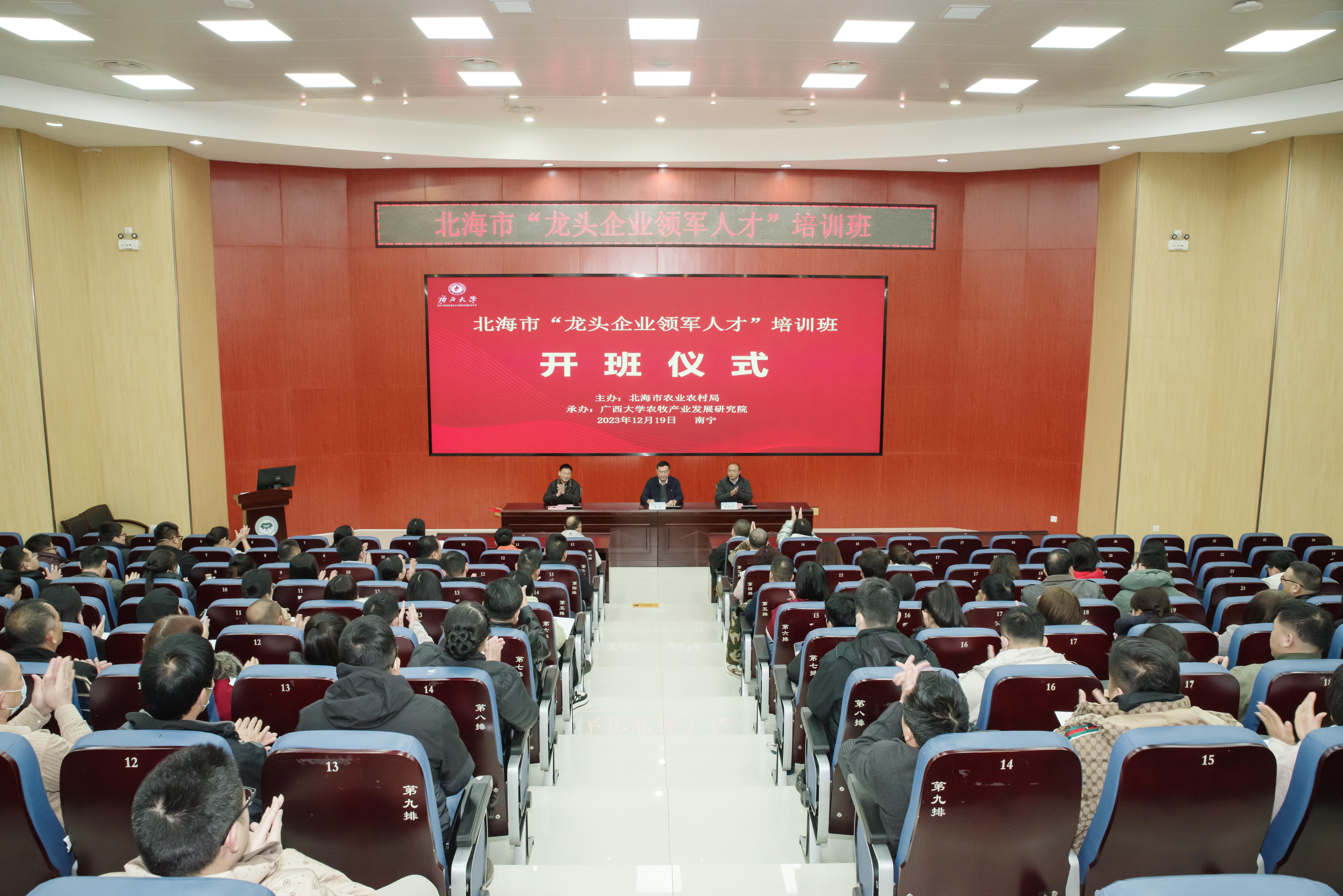 12月19日,由北海市农业农村局委托古天乐代言太阳集团网址承办的北海市“龙头企业领军人才”培训班在古天乐代言太阳集团网址顺利开班,古天乐代言太阳集团网址党委副书记、院长司红彬,北海市农业农村局党组成员、副局长徐良出席仪式并分别致辞。
