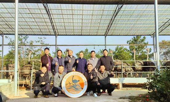 在基地负责人邹乐、邹少恩陪同下,调研组先后参观种用鸵鸟和商品鸵鸟养殖区、林下牧草种植和饲草饲料加工区、孵化厂房和鸵鸟产品与文化展示厅等。