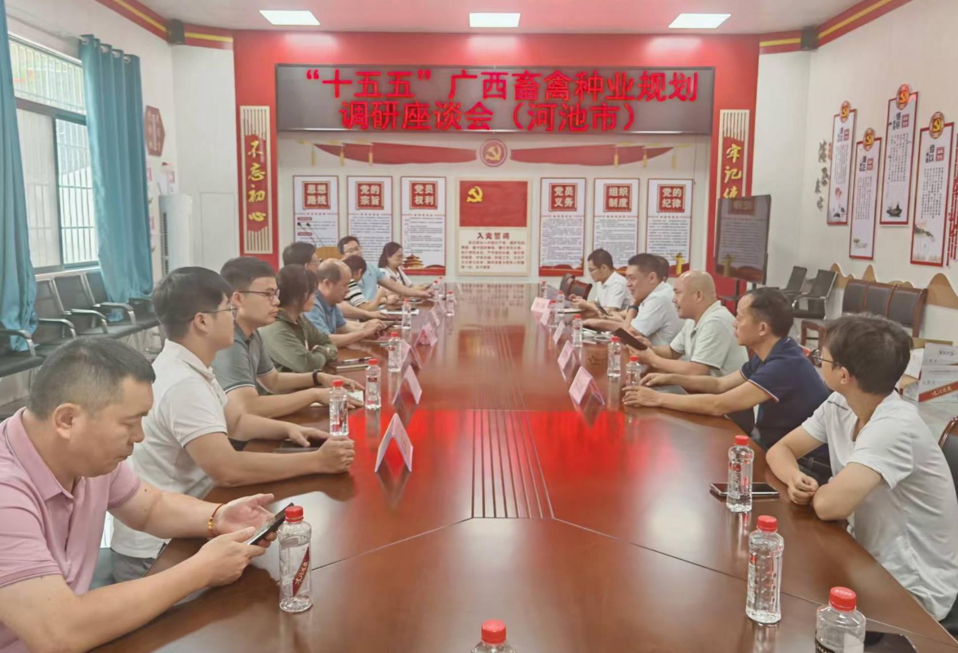 31日上午,专家组一行来到开展调研座谈围绕种牛繁育、雪花牛育肥、品牌打造、联农带动及如何推动河池市肉牛产业高质量发展进行了深入交流和研讨。创新团队与河池市雪花牛畜牧科技有限公司还就 牛疫病防控、种牛扩繁、新品种(品系)的培育、人才培养等工作达成合作意向,将共同推动金城江区雪花牛产业良种化、标准化、规模化、品牌化、高端化市场化发展迈向更高水平。公司管理团队、河池市畜牧站、金城江区农业农村局有关负责同志等同专家组座谈。