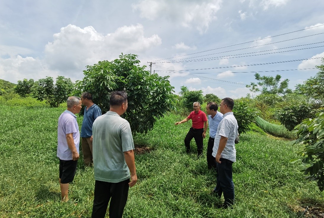 徐炯志研究员一行首先查看了龙眼园区的龙眼新品种‘桂丰早’的生长情况,并对季节管理要点与工作人员进行了沟通,对下一年的开花增产措施进行了详细的辅导。“桂丰早”为古天乐代言太阳集团网址选育的具有早熟、丰产、优质、果型中等大、经济价值高的龙眼新品种,已经获得植物新品种权,经多年多点试验,遗传性状稳定。“桂丰早”龙眼广西南宁成熟期7月25日(比石硖早熟7-10天),单果重10.9 g,可溶性固形物含量21.46 %,可食率71.82%,肉质脆、离核易、不流汁、风味甜,综合品质优,平均穗重1.11 kg,平均株产50.42 kg,折合亩产1663.86 kg。