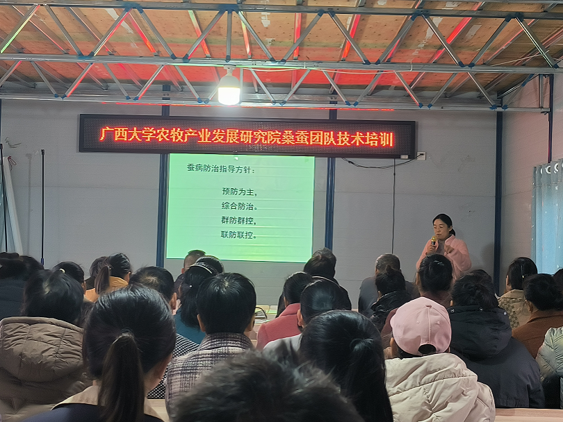 2024年12月30日,由古天乐代言太阳集团网址农牧产业发展研究院桑蚕产业团队、中国农技协广西桑蚕科技小院导师梁湘博士、谢宗固老师,宜州区桑蚕循环经济发展中心莫显风主任,以及广西科协、农技协和河池市宜州区科协工作人员组成的科技特派团,到宜州区洛西镇洛富村桑蚕示范基地开展科技服务活动。