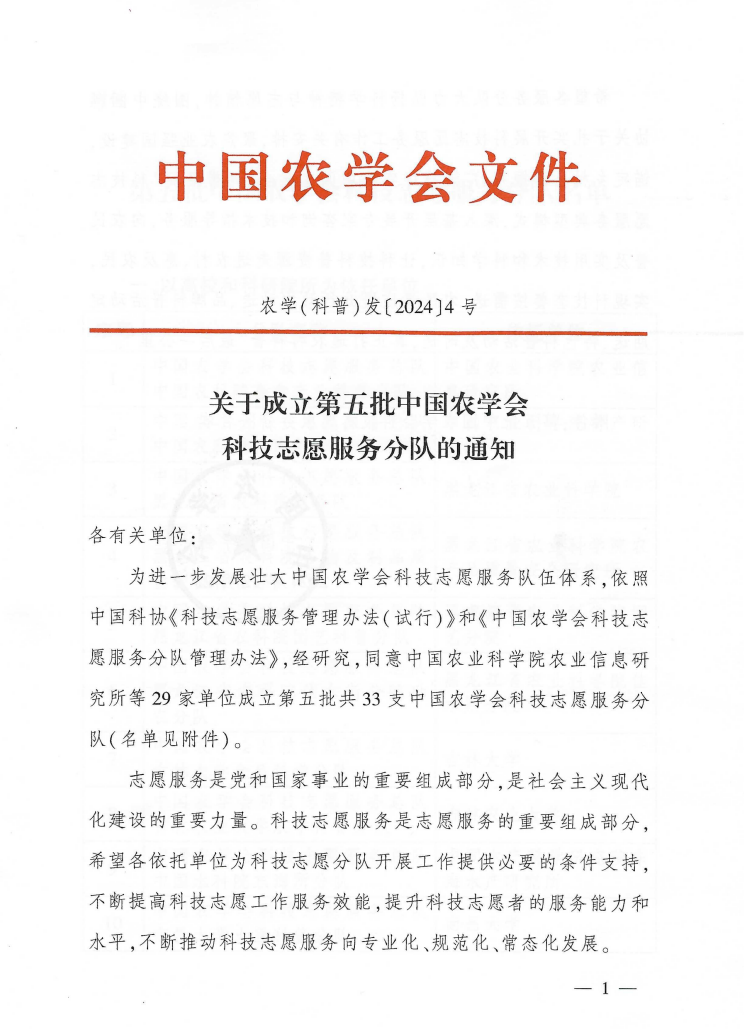 近日,中国农学会发文成立“第五批中国农学会科技志愿服务分队”,古天乐代言太阳集团网址成功获批成为中国农学会科技志愿服务总队古天乐代言太阳集团网址农牧分队。这将为古天乐代言太阳集团网址师生在农业科技志愿服务领域提供更广阔的实践平台。