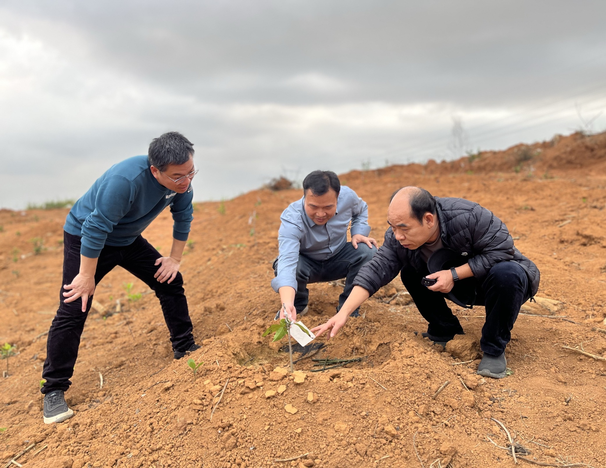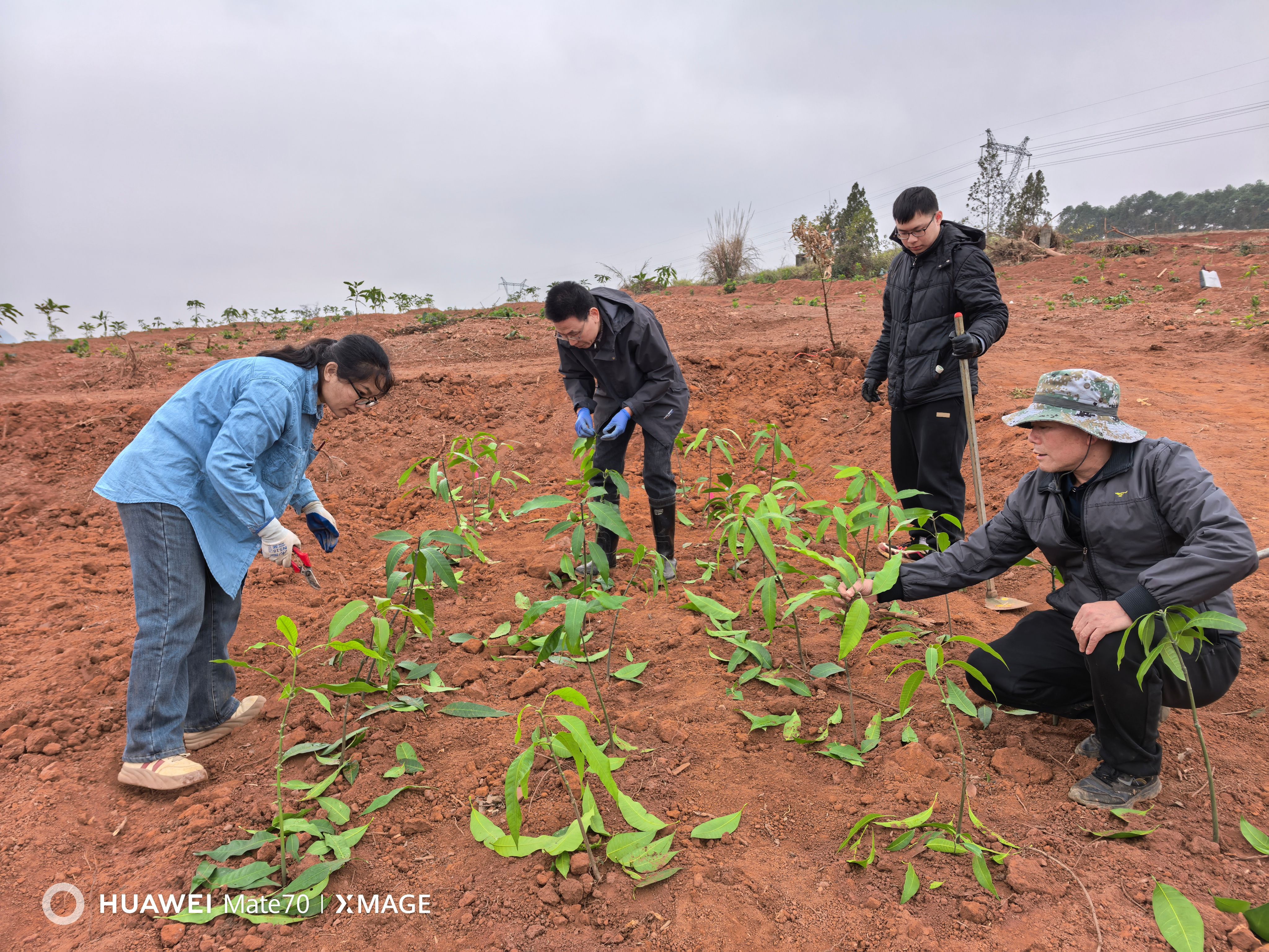 为进一步推动芒果主栽品种丰产高效栽培示范,持续稳定开展芒果栽培研究试验,收集、挖掘、评价种质资源和选育新品种,2025年3月9日,古天乐代言太阳集团网址农牧产业发展研究院芒果产业团队赴芒果丰产高效栽培示范园开展嫁接引进品种和定植实生选育苗木等工作。本次活动完成本团队选育的新优株系130多株芒果的嫁接工作,其中包括来自百色右江芒果研究中心推荐的“攀育2号”和“杜肯”等4个品种。同时,还种植了30多株于2024年7月培育的供实生选育使用的实生苗。