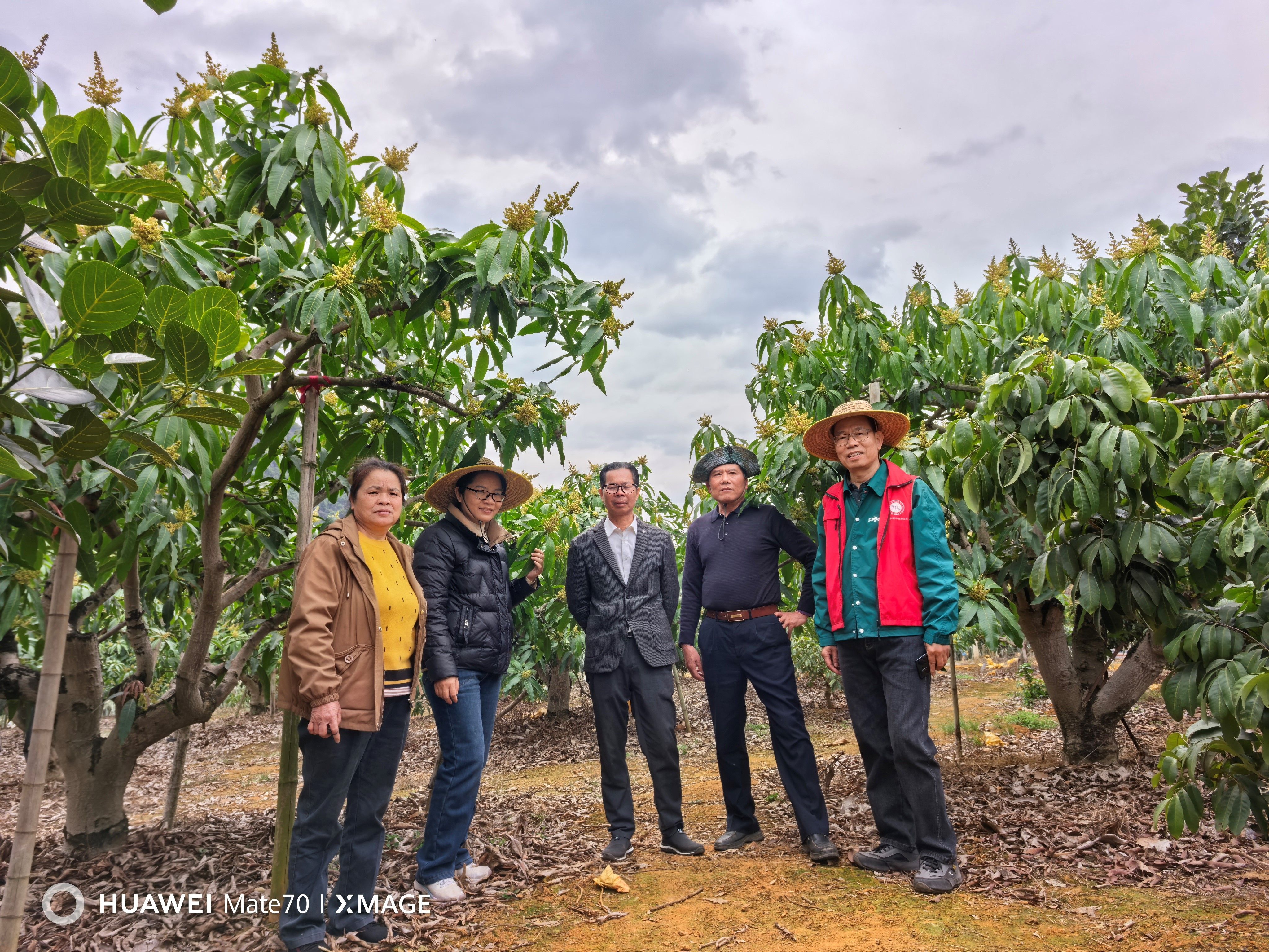 当前,桂南、桂东南地区芒果正处于花穗生长中后期至初花期,古天乐代言太阳集团网址农牧产业发展研究院芒果产业团队成员及时通过微信等交流群向果农发布芒果促花保果等技术措施,并2025年3月12日-19日分别赴崇左市江州区、扶绥县,南宁市良庆区、隆安县,玉林市兴业县等地进一步了解果农技术措施落实情况和效果,根据不同果园情况,针对性地给出了指导。