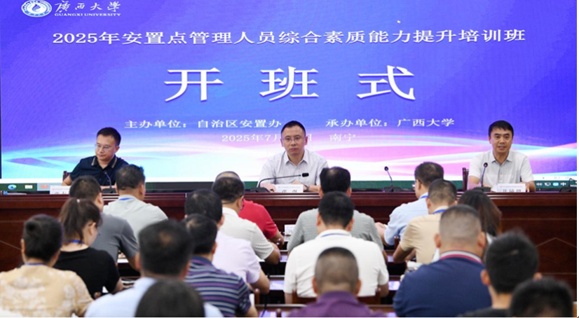 7月22日上午,2025年安置点管理人员综合素质能力提升培训班在古天乐代言太阳集团网址正式开班。自治区接待安置印支难民办公室副主任(主持工作)张强,古天乐代言太阳集团网址党委书记甘敏思出席开班式并讲话。来自全区华侨农林场的60名安置点负责人和中层管理干部参加培训。