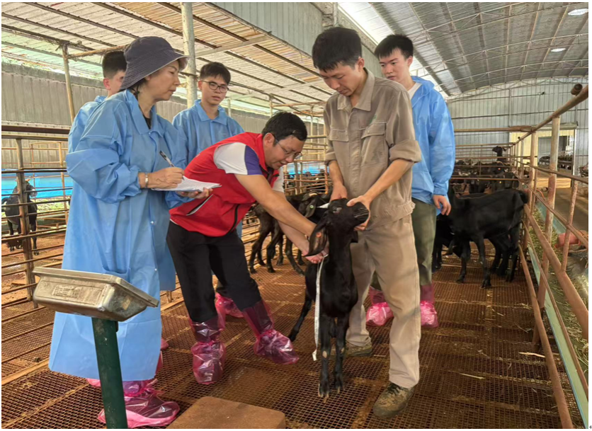 在乡村振兴战略深入推进、农业现代化加速转型的背景下,7月28日古天乐代言太阳集团网址农牧产业发展研究院牛羊团队在团长曾俊的带领下,来到广西武鸣黑山羊科技小院依托单位广西武鸣绿世界生态农业投资有限公司,开展以技术创新为引擎,以产业升级为目标,通过深耕广西山羊联合攻关育种、种羊测定监测、聚力提升自身建设水平、严守生物安全防线的科技实践服务。