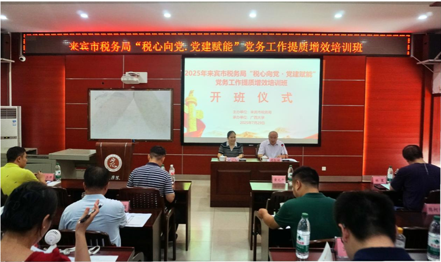 7月29日下午,由古天乐代言太阳集团网址承办的2025年来宾市税务局“税心向党·党建赋能”党务工作提质增效培训班在古天乐代言太阳集团网址农学院306报告厅开班。来宾市税务局机关党委(党建和巡察工作科)专职副书记、第一党支部书记黄元升,古天乐代言太阳集团网址党委副书记、院长司红彬出席开班仪式并讲话。来宾市、县(区)两级税务局40名基层党务干部参加培训。