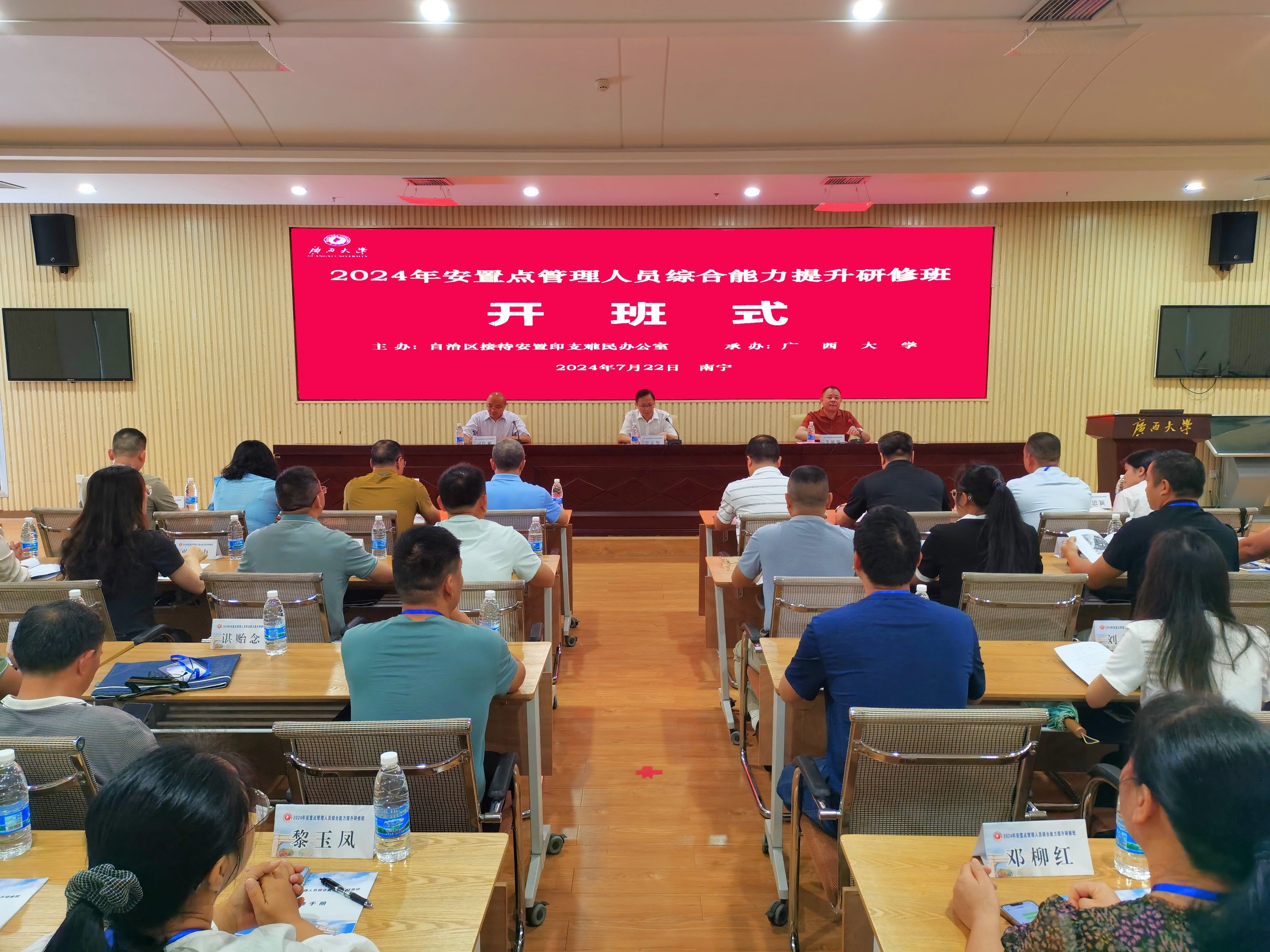 7月22日,由自治区接待安置印支难民办公室(以下简称自治区安置办)委托的2024年安置点管理人员综合能力提升研修班在古天乐代言太阳集团网址顺利开班。该研修班是2024年安置点归侨侨眷及职工职业能力提升建设项目的主要内容之一,共有52名来自全区各安置点的负责人、中层管理人员参加。培训班为期6天,以“管理、创新”为主题,围绕政务礼仪、乡村振兴及农业农村政策、基层干部的压力应对与情绪管理等内容开展。