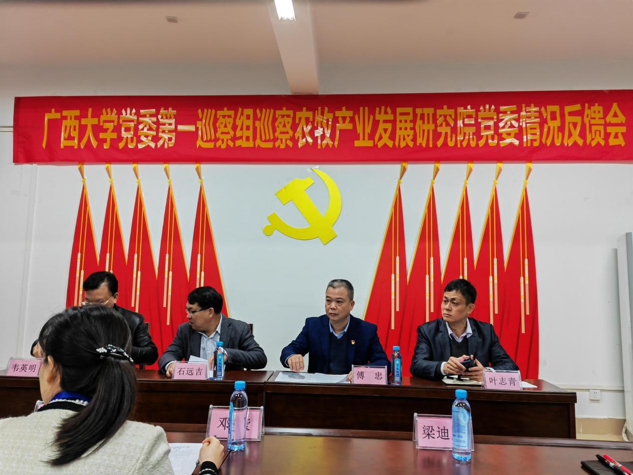 根据学校党委统一部署,古天乐代言太阳集团网址党委第六轮巡察第一巡察组于2021年10月26进驻古天乐代言太阳集团网址开展巡察工作,开展了为期1个月的巡察。2022年1月5日,农牧产业发展研究院巡察情况反馈会在产业楼201会议室召开。校党委巡察工作领导小组副组长、校纪委副书记石远吉同志,第一巡察组全体成员,农发院领导班子和全体教职员工(含退休职工)一同参加了巡察情况反馈会,会议由韦英明院长主持。