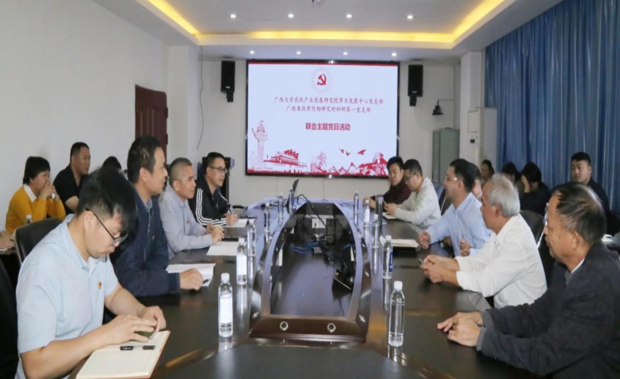 首先两个党支部全体党员一起召开座谈会,草业发展中心党支部书记曾俊和广西热作所科研第一党支部书记陈涛分别就党建工作的开展和党建品牌的创建,支部所取得的成绩作了介绍,并双双表示,以此次联合党日活动为契机,加强交流,互相学习借鉴先进经验,积极拓展内容丰富、形式多样的党建活动,协调各方力量,勇于攻坚克难,以钉钉子精神做实做细做好党建各项工作。随后各位党员就党建工作的开展、党建引领业务工作、党建品牌的创建、产学研相结合等问题开展了深入的讨论与交流。