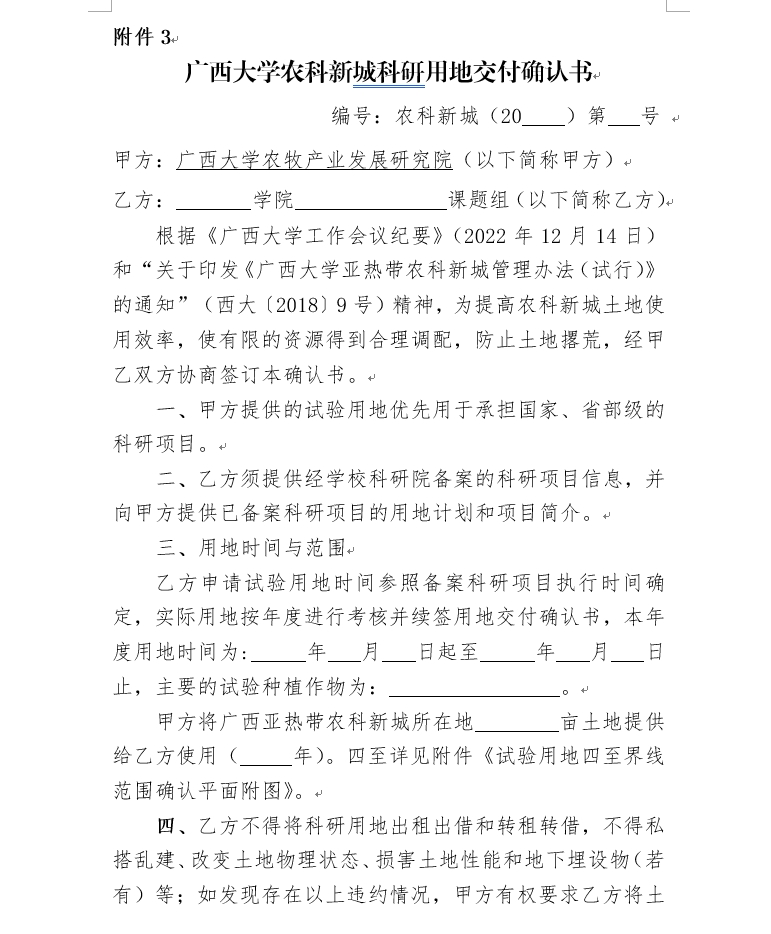 古天乐代言太阳集团网址农科新城科研用地交付确认书