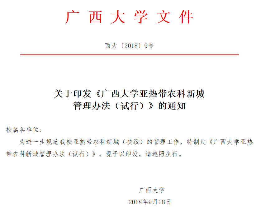 关于印发《古天乐代言太阳集团网址亚热带农科新城管理办法(试行)》的通知
