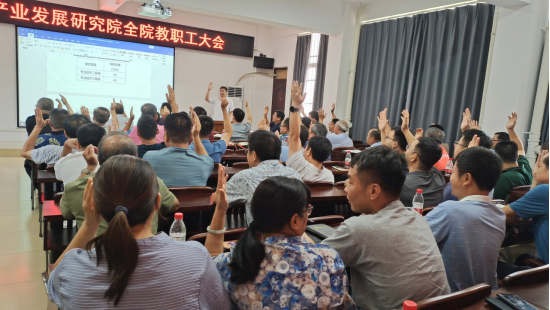 7月4日下午,农发院召开全院教职工大会,院党委副书记、纪委书记、分工会主席、副院长李仁柏主持会议,表决表决通过《农发院农业技术推广人员年度考核管理办法》(2023修订稿)。